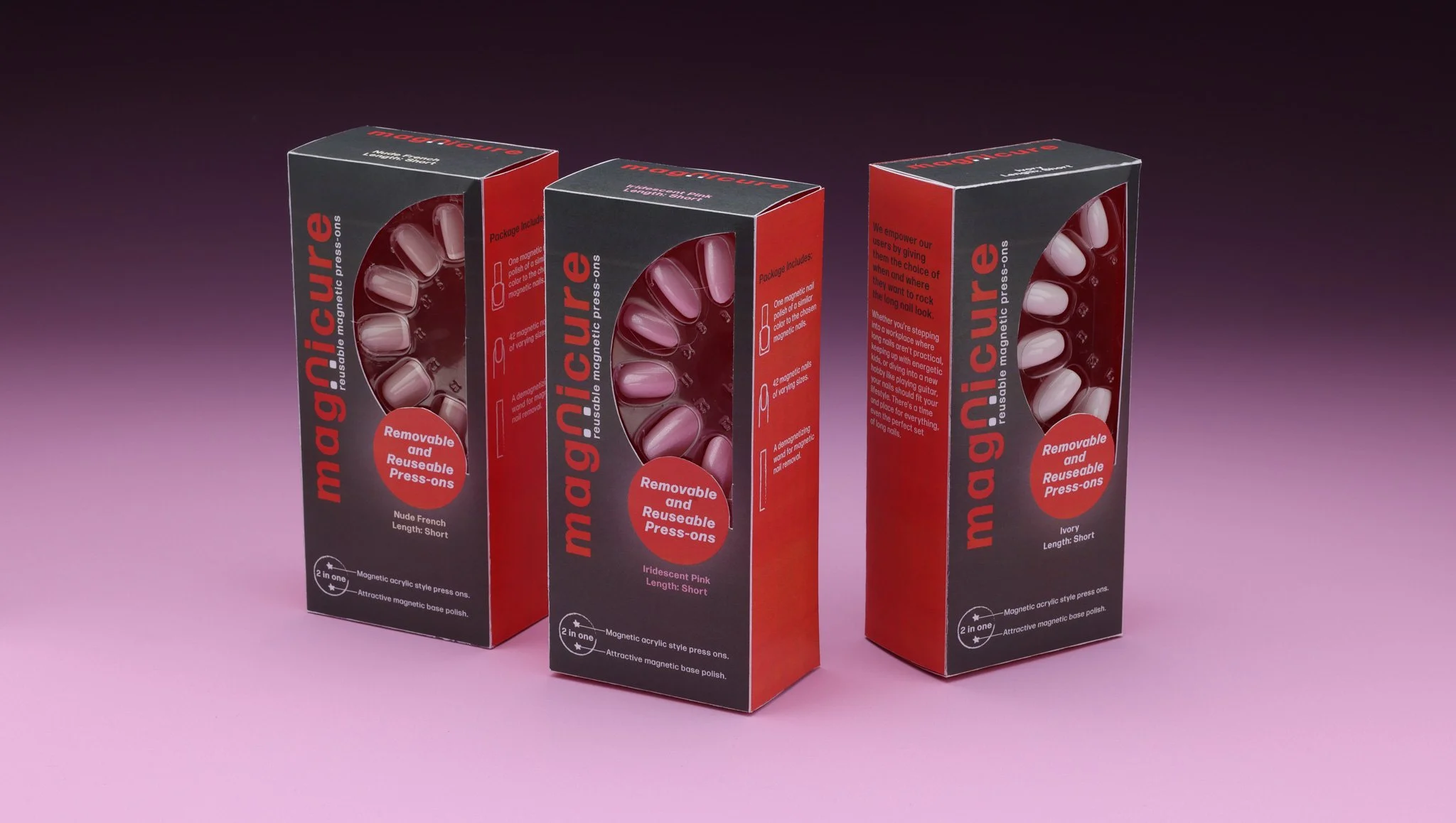 Magnicure is an innovative product that uses magnetic technology to allow users to easily attach and remove nails at their convenience. With Magnicure, users can effortlessly switch between having stylish, long nails and maintaining a natural look, depending on their needs or circumstances.