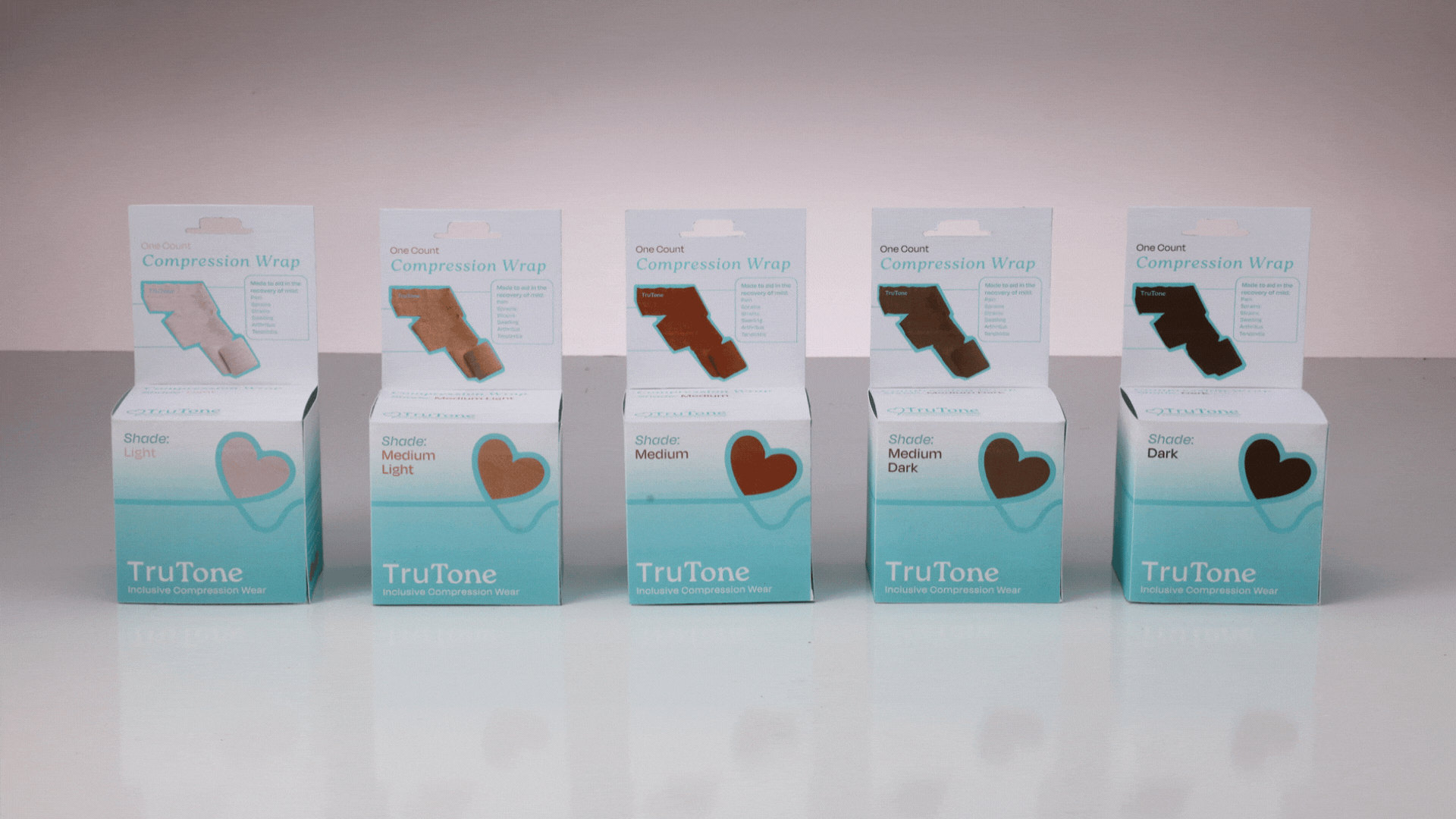 TruTone is a line of subtle, and discreet compression wear products designed to blend seamlessly with a wide range of skin tones. This innovative line provides an inclusive alternative to the standard color options on the market, allowing more people to heal with confidence. From compression wraps and braces to knee and wrist sleeves, the product range is tailored for functionality ensuring that the target audience (athletes as well as individuals above 45) can treat injuries without sacrificing personal style or privacy.